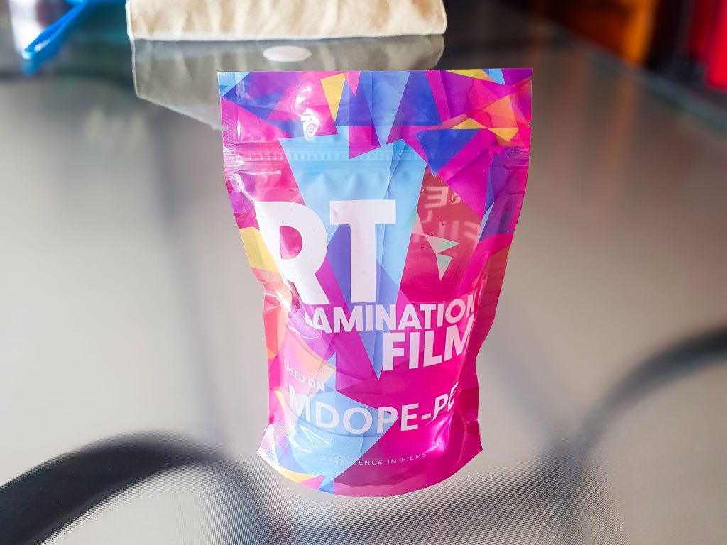 RT PE stands for Room temperature sealant layer. This new material removes the necessity of heat when sealing a sachet. This new material was designed specifically with focus on it being environmentally friendly as it is completely recyclable.